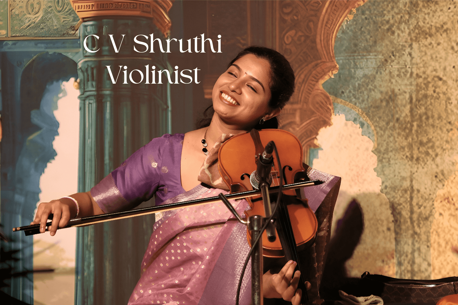 Music didn’t arrive in Shruthi’s life — it was already there, softly humming in the walls of her home, carried in the morning ragas and the laughter of a family joined by melody. Born into a lineage steeped in art, she grew up surrounded by rhythm and devotion.